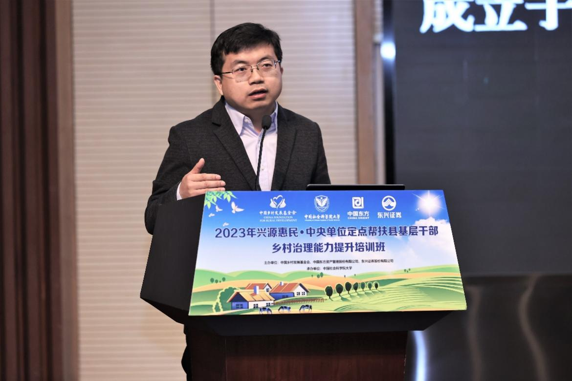 中国乡村发展基金会秘书长陈红涛在致辞中说,中国乡村发展基金会一直重视乡村人才培养,今天也是首次针对第一书记和村支部书记两类人群的组织培训。同时,陈红涛秘书长围绕从脱贫攻坚到乡村振兴阶段的探索和实践,分享了中国乡村发展基金会的发展模式,通过以一个转变、二个过渡、三个更加注重、四项原则、五个国内业务方向为发展思路助力乡村发展,坚守初心,踔厉奋发,并于2022年被民政部评为5A级基金会。未来,基金会将继续遵循“助力乡村发展,促进共同富裕”的使命,深入贯彻二十大精神,深入学习贯彻习近平新时代中国特色社会主义思想,不断打造更多乡村振兴公益事业的新品牌、新名片。