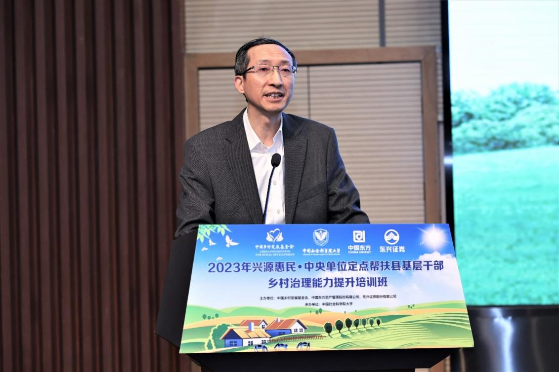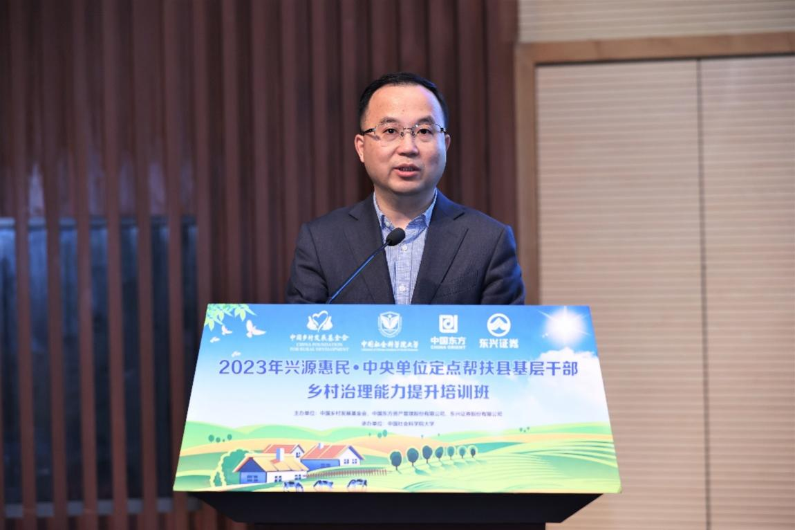东兴证券股份有限公司党委副书记、监事会主席秦斌简要回顾了东兴证券过去几年的工作成果与服务成效,特别提到东兴证券与乡村发展基金会联合创办的“兴源惠民”教育帮扶培训项目。该培训班始办于2017年,近6年来共开展线上线下培训十余场,服务人数超6万人次。秦斌强调,当前全面建设社会主义现代化国家,最艰巨最繁重的任务仍在农村,在这样的大局观指引下,“兴源惠民”培训班应运而生。东兴证券顺应党的二十大精神与乡村振兴的战略导向,牢记习近平总书记嘱托,致力于发挥资本市场在服务乡村振兴中的作用。