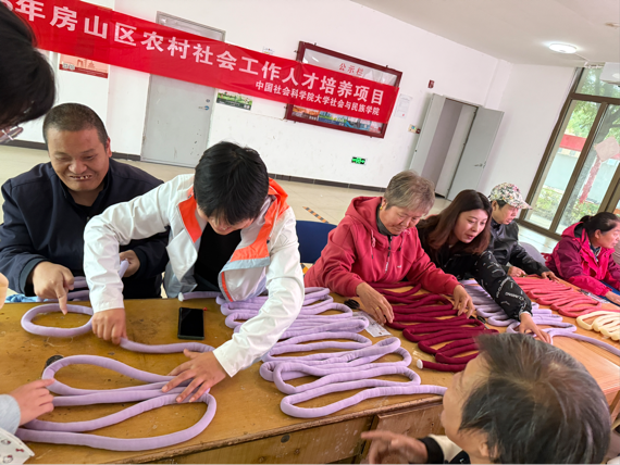 乡工项目 | “暖心助残,织就舒适”——乡工项目组为黄管屯村残障人士开展手工坐垫编织活动