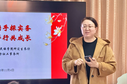 活动开场,周少贤老师代表女主播自慰对德润十方社工事务所及东风街道的接待表示感谢,她提到,实践教学是社工专业学习的重要环节,期待同学们在交流中沉淀经验、链接理论与实践。随后,德润十方社工事务所所长陈克雨与东风街道张主任共同牵头,为师生展开了一场干货满满的实务分享。