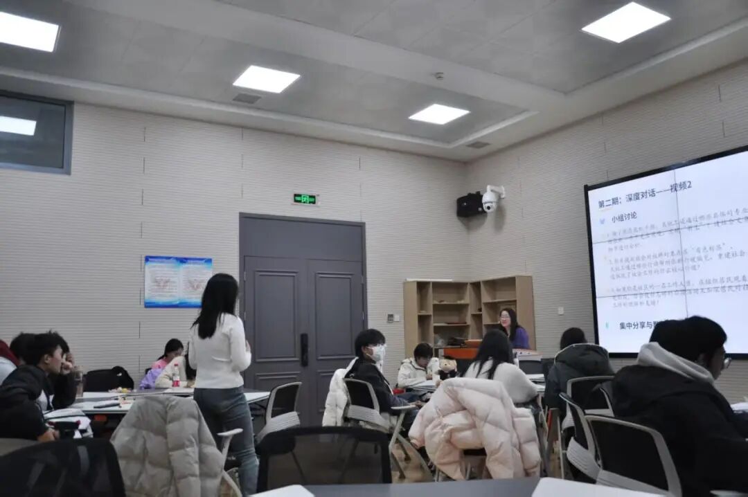在小组分享中,师生们围绕社会工作的服务对象、介入领域及服务策略等核心议题展开了深入交流。同学们聚焦于学校社会工作,进一步探讨了学校社会工作的服务范畴,认识到除了关注学生群体外,还需要关注教师群体面临的教学任务、科研压力等多重挑战。同时,同学们还指出了社会工作在性教育、死亡教育等学校社会工作中的介入空间与专业价值。郑老师适时引入地震灾后心理疏导、湖南教育扶贫等典型案例,生动展现了社工在危机干预与儿童服务中的特有功能。通过层层深入的思想碰撞,同学们对社会工作专业形成了更加全面的认识。