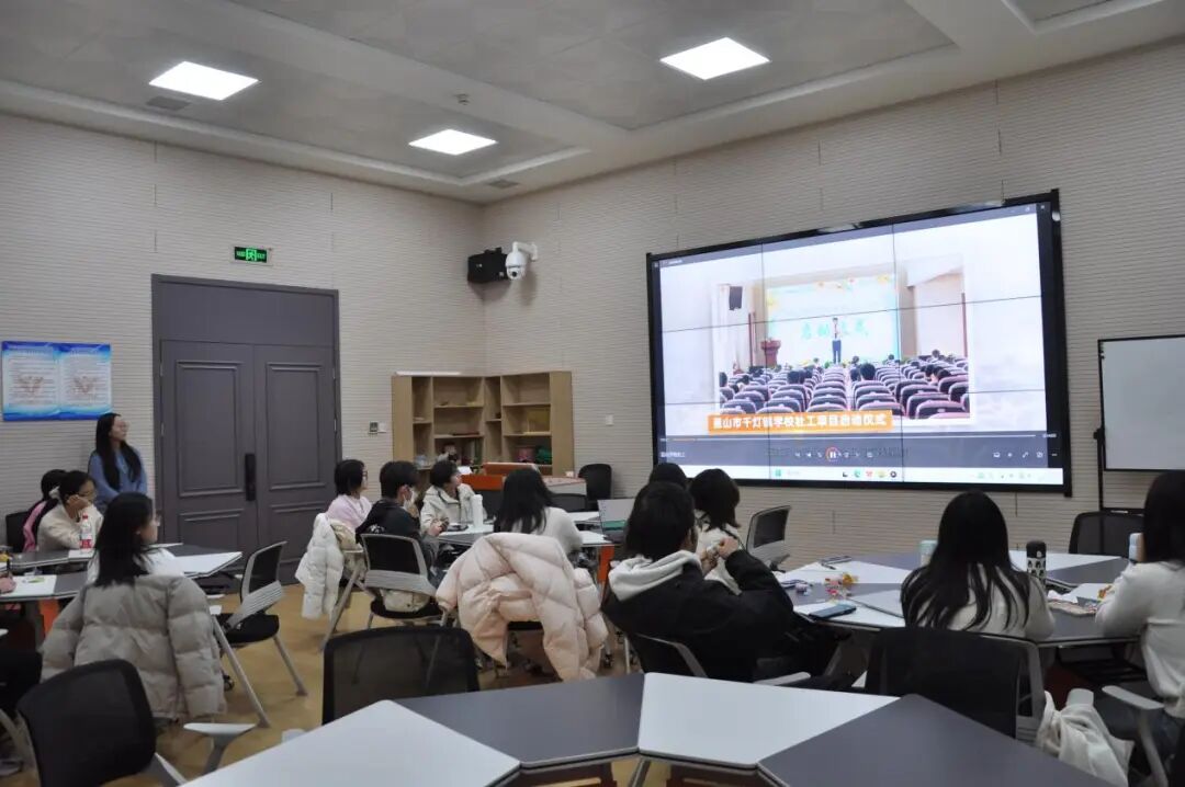 实习实践办公室主任郑玲老师主持,25级研苑社工编辑部的硕士师姐们协助。本次活动通过观影、互动答题与小组讨论的形式,助力新生在专业认知与价值塑造上实现初步成长。
