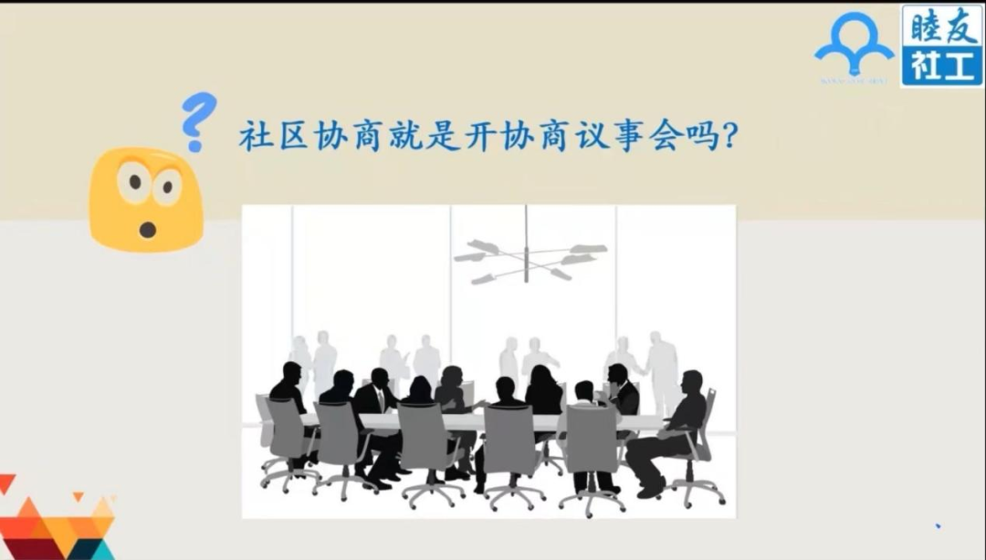 会中主持:从“管理”到“促动”。会议要严格跟着“陈情、讨论、形成决议”的标准流程走,李老师重点传授了适配社区的议事规则,既有主持人中立、发言机会均等、正反方轮流发言的程序性规则,也有参与者面向主持人发言、保证发言完整、限时限次、一事一议、立场明确、文明表达的参与性规则。还通过情景模拟,细致剖析了主持人该如何抛开个人观点,专注把控流程公正,引导大家开展理性、有建设性的社区对话。